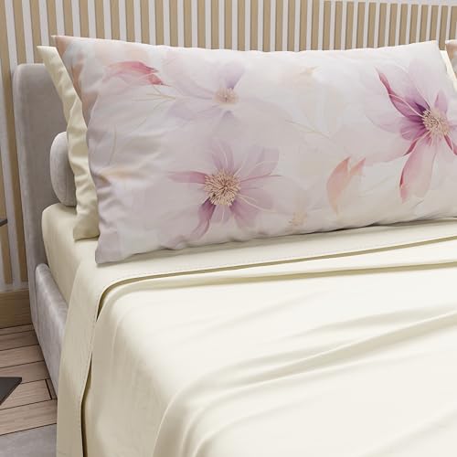 PETTI Artigiani Italiani - Parure de Draps en Coton pour Lit Double avec Taies d’Oreiller et Drap Housse 160x200, Motif Floral 33 Crème, 100% Fabriqué en Italie