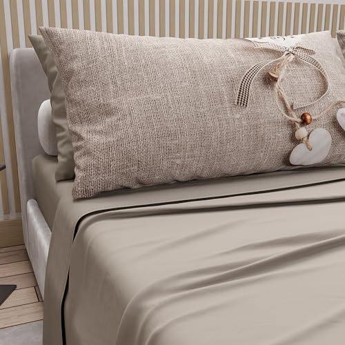 PETTI Artigiani Italiani - Parure de Draps en Coton pour Lit Double avec Taies d’Oreiller et Drap Housse 160x200, Motif 339 Taupe Clair, 100% Fabriqué en Italie