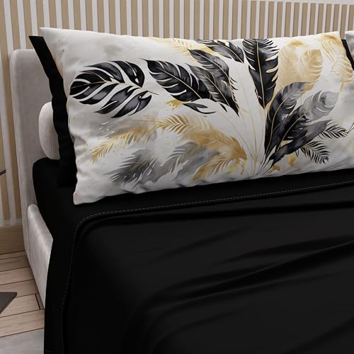 PETTI Artigiani Italiani - Parure de Draps en Coton pour Lit Double avec Taies d’Oreiller et Drap Housse 160x200, Motif Palmier Noir, 100% Fabriqué en Italie