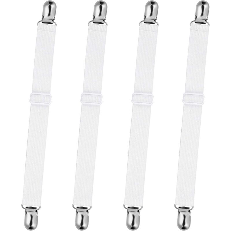 Dpzo - Attaches de Drap de Lit, 4 Bretelles Ajustables avec Pinces Robustes pour Draps Housses et Draps Plats (Blanc)