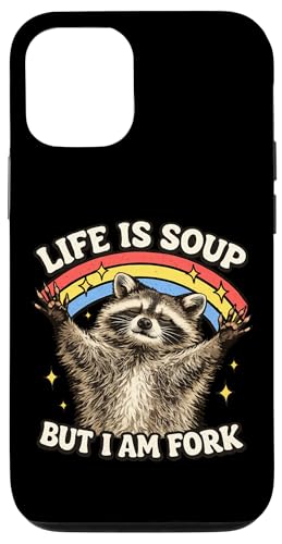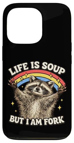 Life is Soup But I am Fork existentiel Dread Raccoon Meme Coque pour iPhone 13