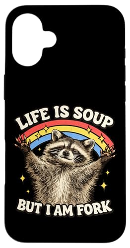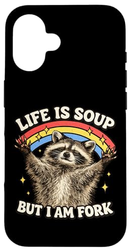 Life is Soup But I am Fork existentiel Dread Raccoon Meme Coque pour iPhone 16 Plus