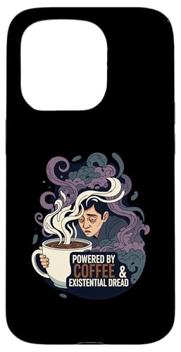 Powered by Coffee & Existential Dread Funny Tired Design Coque pour iPhone 15 Pro