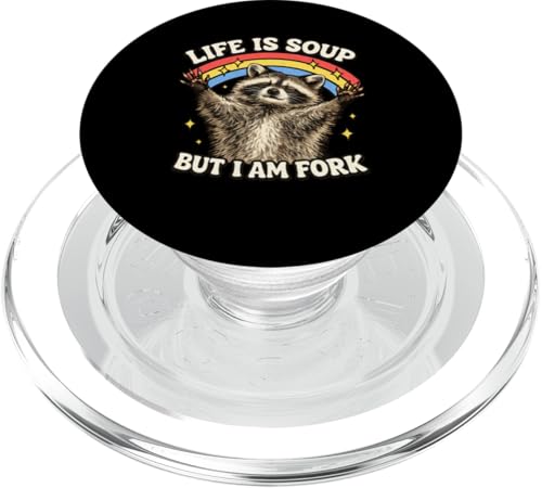 Life is Soup But I am Fork existentiel Dread Raccoon Meme PopSockets PopWallet pour MagSafe
