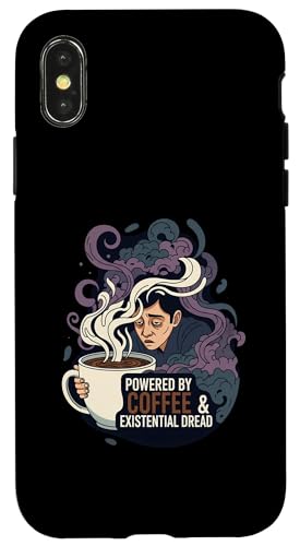 Powered by Coffee & Existential Dread Funny Tired Design Coque pour iPhone X/XS