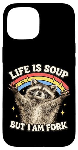 Life is Soup But I am Fork existentiel Dread Raccoon Meme Coque pour iPhone 15