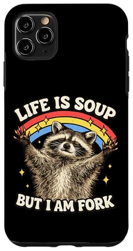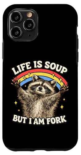 Life is Soup But I am Fork existentiel Dread Raccoon Meme Coque pour iPhone 11
