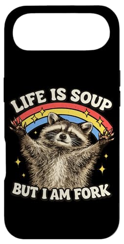 Life is Soup But I am Fork existentiel Dread Raccoon Meme Coque pour iPhone 17