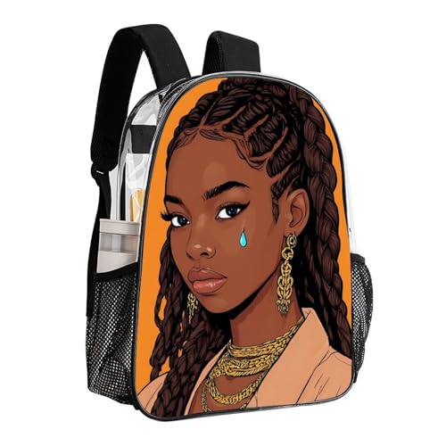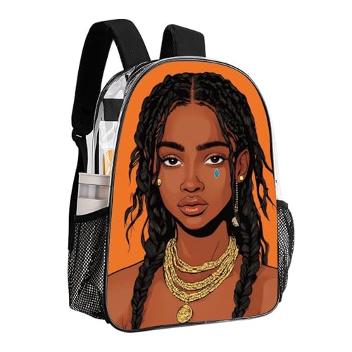Sac à dos multifonction antivol grande capacité - Motif dreadlocks tendance, femme africaine, art, voyage, randonnée et camping, sac transparent