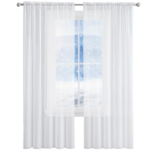 Rideaux Voilage 150 x 90 cm Rideaux Salon Semi-Transparent Rideau Voilages Intérieurs Voilage Fenêtre Court pour Porte Fenetre Dressing Salon, Blanc