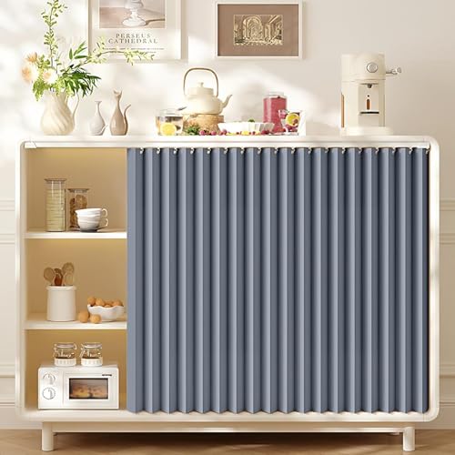YSZBD Rideau de Placard avec Rails Coulissants – Rideau Occultant sur en Simili-Lin Rideau Imperméable et Anti-Poussière, sans Perforation pour Cuisine, Salle de Bain et Dressing,Grey-W150cm/H70cm