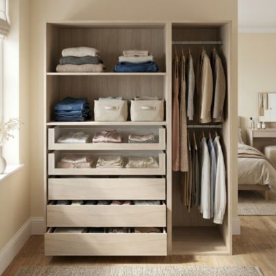 Dressing effet chêne double penderie et 4 tiroirs GoodHome Atomia H. 225 x L. 150 x P. 58 cm