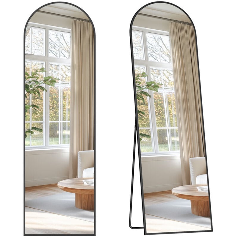 Songmics – Miroir sur pied arqué 150 x 40 cm – Cadre en aluminium noir – Verre trempé résistant – Prêt à poser pour chambre, salon, dressing