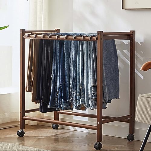 Portant à Pantalons Roulant en Bois Massif avec roulettes - Organisateur de vêtements autoportant en métal pour Chambre, buanderie, Dressing - Idéal pour Pantalons, Jupes, Foulards et Plus e