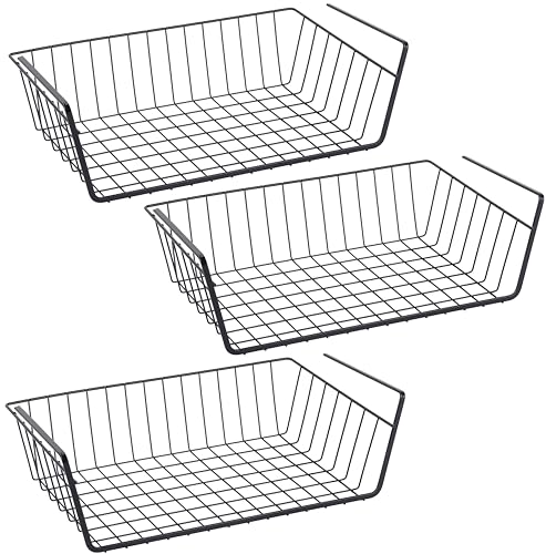 RICOO Panier Suspendu de Rangement en Fil Métallique KR001Bx3 - Organisateur d'Étagère pour Cuisine, Bureau, Dressing, Armoire, Lot de 3, 37,5 x 9,5 x 22 cm, Noir