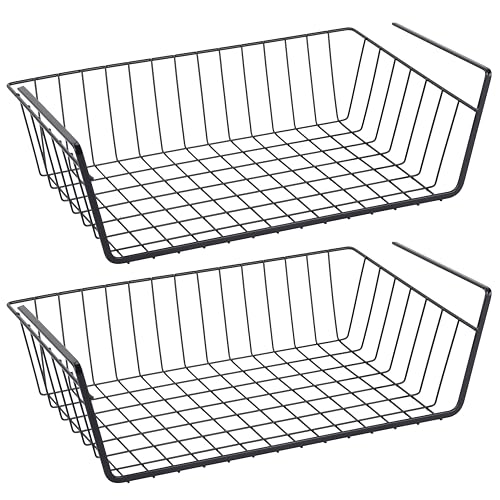 RICOO Panier Suspendu de Rangement en Fil Métallique KR001Bx2 - Organisateur d'Étagère pour Cuisine, Bureau, Dressing, Armoire, Lot de 2, 37,5 x 9,5 x 22 cm, Noir