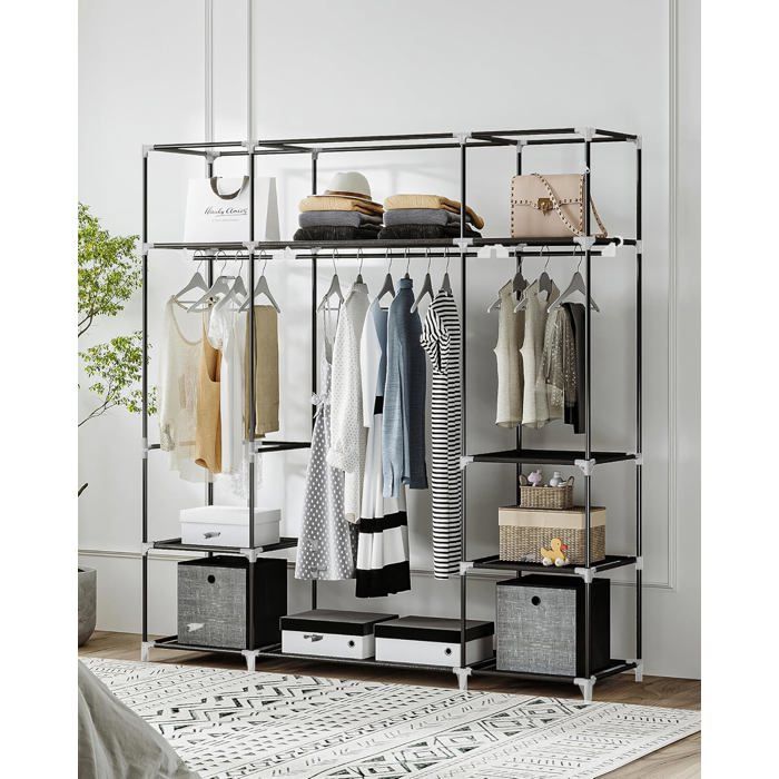 Armoire de Rangement Penderie Pliable Dressing Armoire Métallique avec Barres de Suspension Porte-vêtements OrganisateurNoir