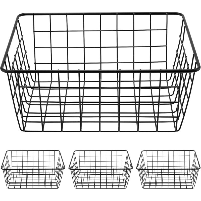 Lot de 4 paniers de rangement en fil métallique noir avec poignées, idéaux pour la cuisine, le garde-manger, le dressing ou la chambre.