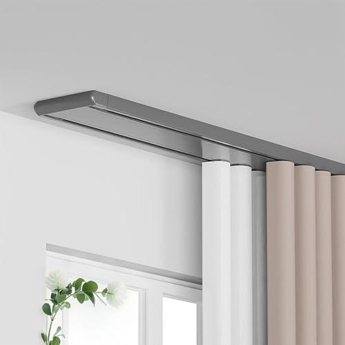 GLDYTVF Ensemble de Tringle à Rideaux Double Rail avec roulettes silencieuses, séparateur de pièce en Aluminium pour Salon, Chambre, Dressing, hôpital, hôtel, Porte coulissante (Gris 4 m/13 pi)