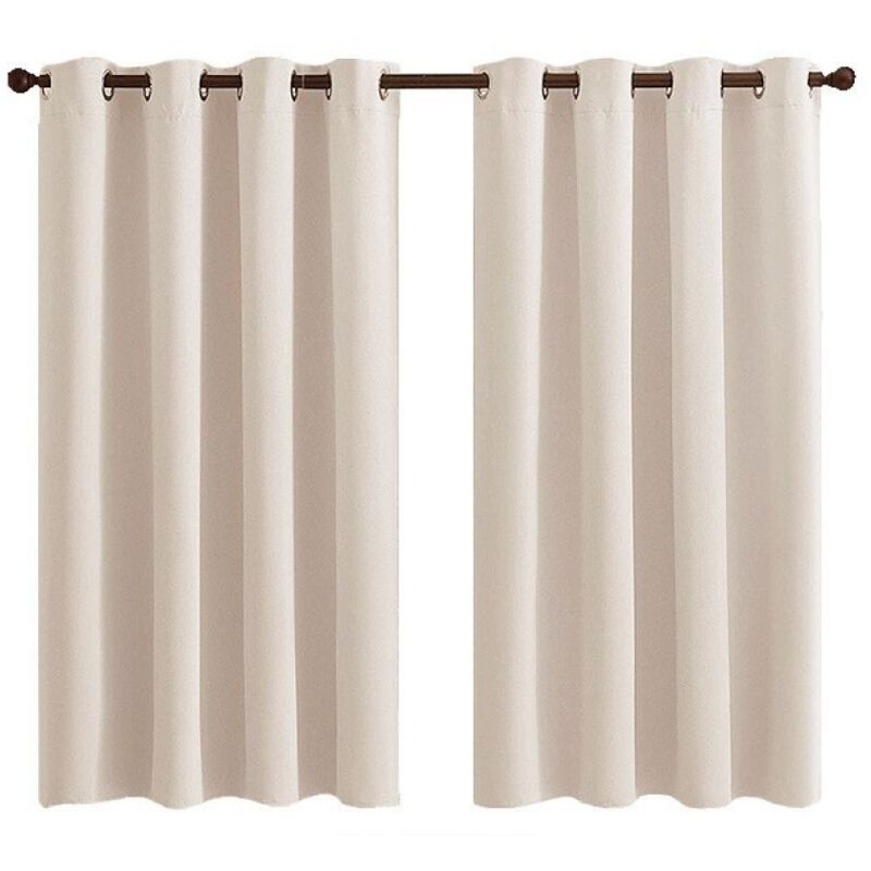 Rideau Occultant Thermique - 2 Panneaux Courts Isolants Anti-Froid/Bruit à Oeillets - pour Salon, Chambre (Enfant/Adulte), Dressing - 140x160cm Beige