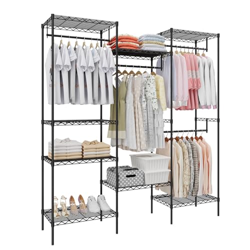 Garvee Portant Vêtements Métal Lourd avec 4 Barres et 8 Étagères, Rangement Amovible et Réglable pour Dressing (Noir, 175 L x 40 P x 194 H cm)