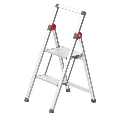GIERRE Mini SLIMSTEP Tabouret Pliant en Aluminium, 2 marches, Plate-Forme 30,5 cm, Parapet 40 cm, Profondeur fermée 5 cm
