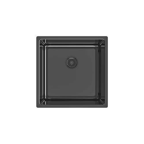 Edesa Évier de cuisine bas plan 1 cuve carrée FUJI BE 45 x 40 cm Acier inoxydable Profondeur 18 cm Fond absorbant Accessoires inclus Couleur noire
