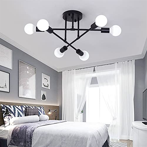 KXEcoLife Plafonnier Noir de Style Industriel à 6 Lampes avec Bras réglables, idéal pour Chambre, Dressing ou Salon. Compatible avec Ampoules E27.