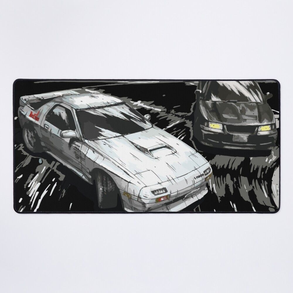 Grand Tapis de Souris Gaming pour Bureau Initial D - Tandem Mountain Drift Racing EVO III contre FC rx-7 75x40cm Antidérapante Clavie