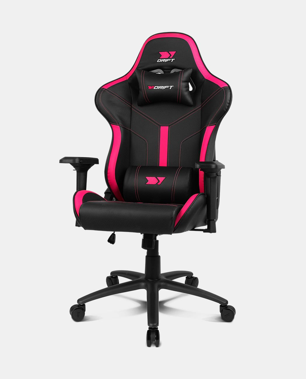 DRIFT GAMING DR175PINK- Chaise de jeu professionnelle, similicuir, accoudoirs réglables 2D, piston de classe 4, pivotant, mécanisme papillon, coussin lombaire et cervical, noir/blanc/rose