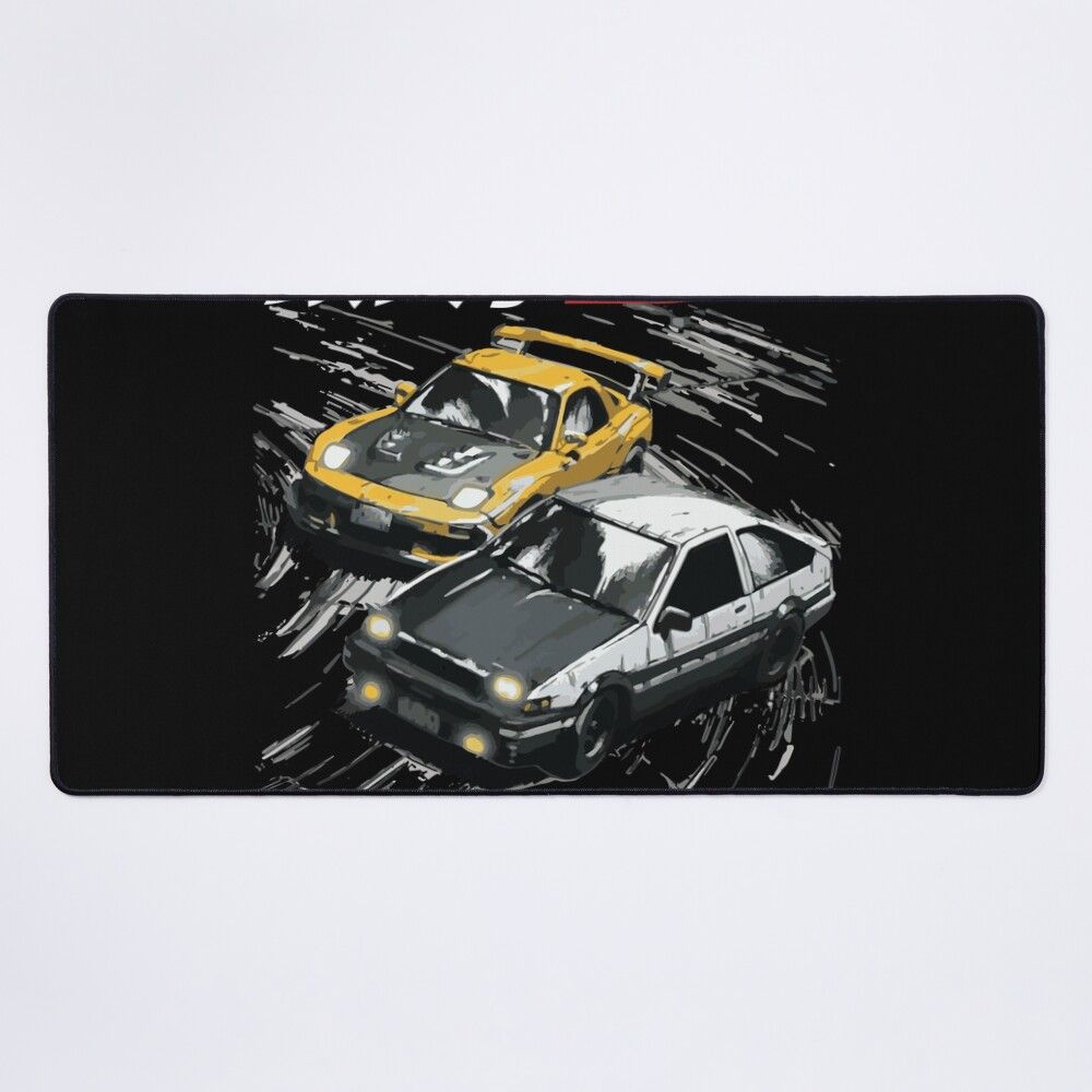 Grand Tapis de Souris Gaming pour Bureau Initial D - Tandems de Drift Racing Toyota Corolla AE86 Sprinter Trueno vs FC rx-7 75x40cm Antidérapante Clavie