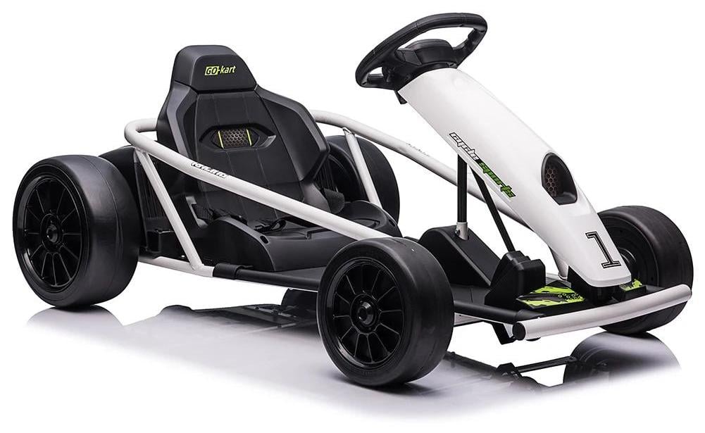 Kart électrique - Drift Kart - Batterie 24 V - Deux moteurs de 300 W - Vitesse : 13 km/h - Musique - À partir de 14 ans - Blanc