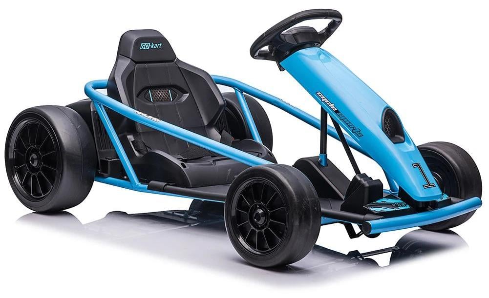 Kart électrique - Kart de drift - 24 V - Deux moteurs de 300 W - Vitesse maximale de 13 km/h - 4 roues - Musique - À partir de 14 ans - Bleu