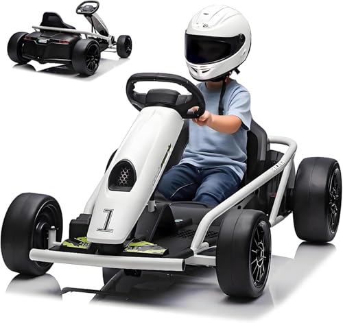 Kart drift haute performance pour enfants de 8 à 12 ans : moteurs 24 V et 2 x 300 W, fonction musicale, démarrage en douceur, siège spacieux, ceinture de sécurité, véhicule électrique robuste pour ext