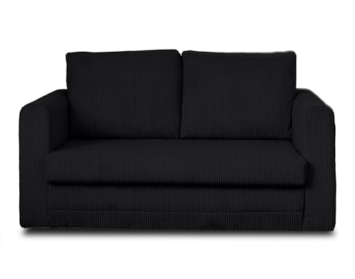 BestMobilier - Canapé Droit Convertible Déplimousse Marilia en Velours Côtelé - Canapé Lit - Sofa Noir 2 Places - Salon