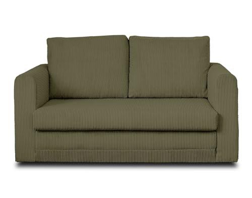 BestMobilier Lisa Design - Canapé Droit Convertible Déplimousse Marilia en Velours Côtelé - Canapé Lit - Sofa Vert 2 Places - Salon