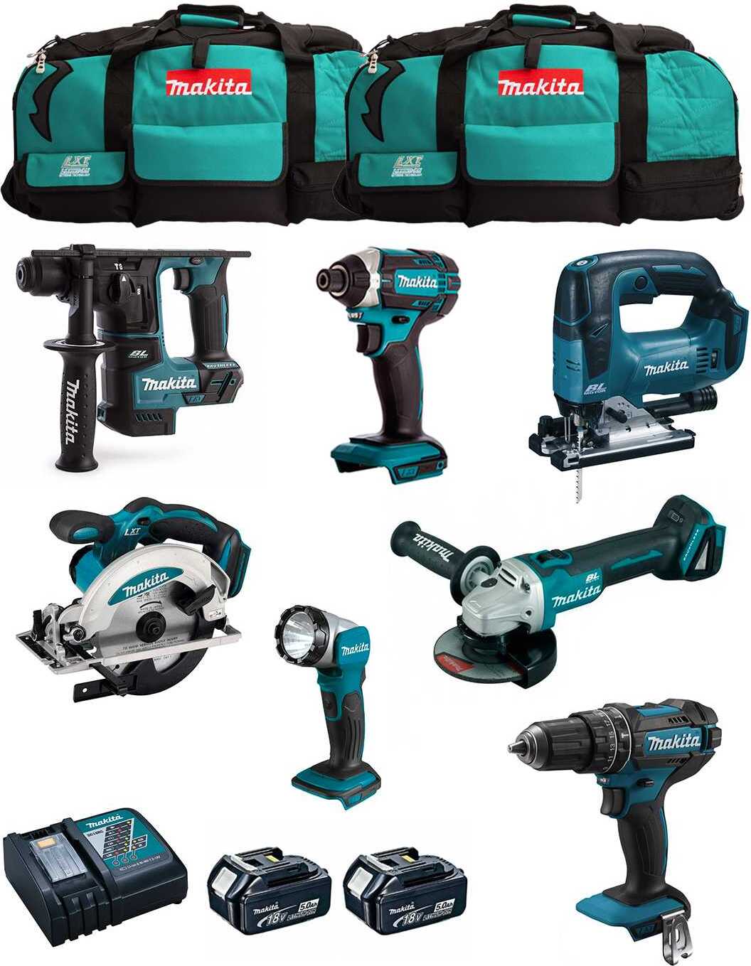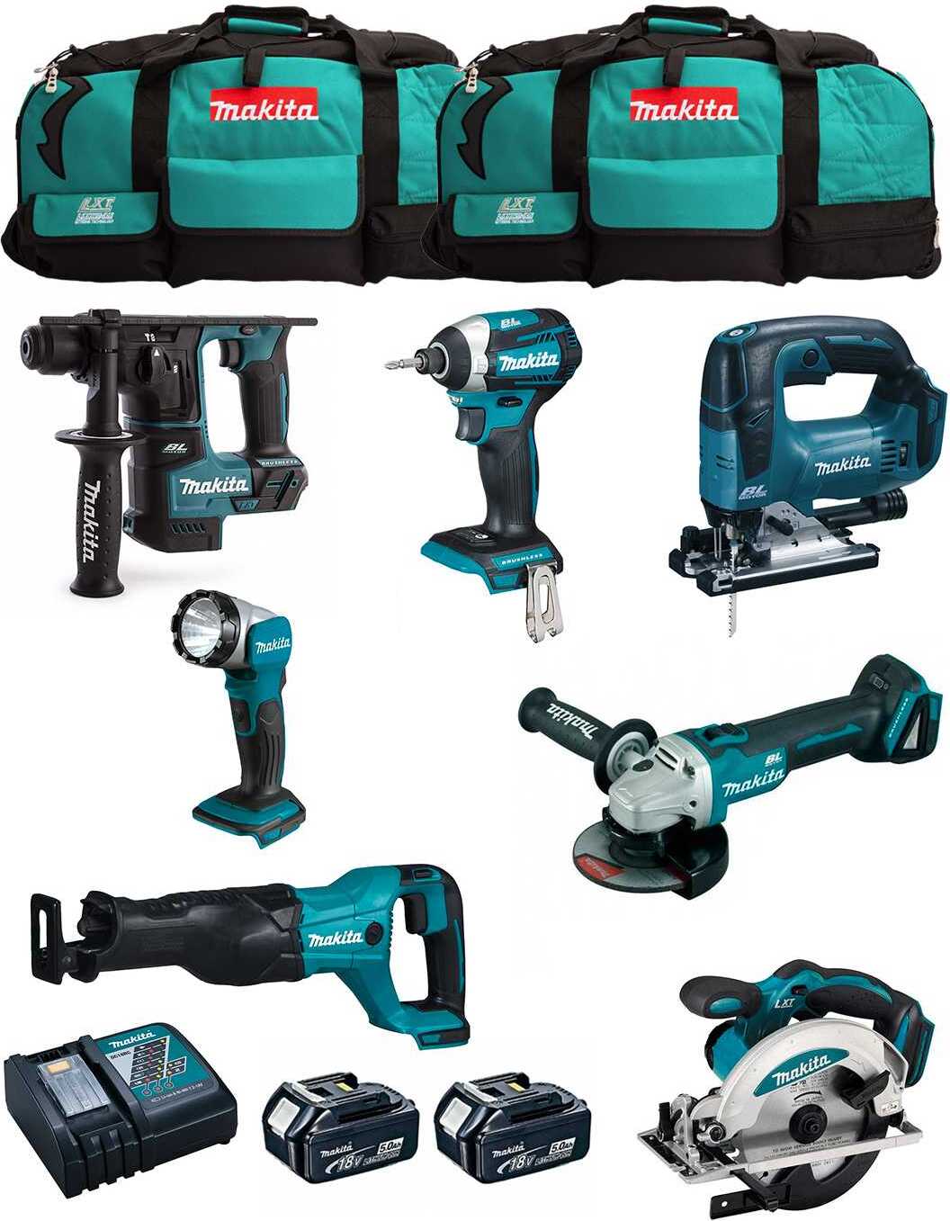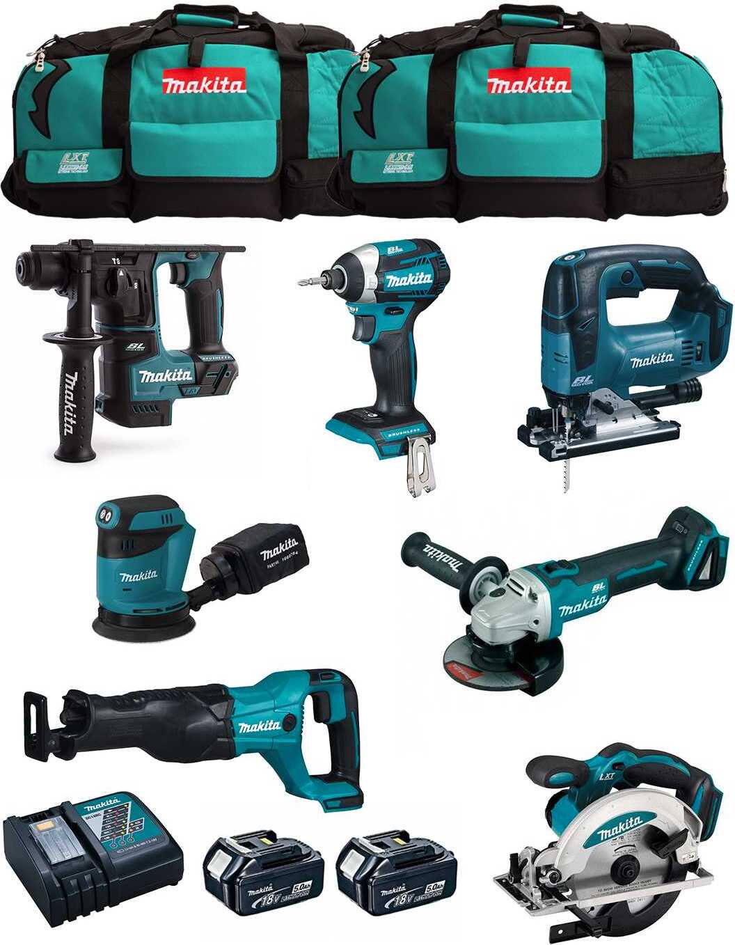 MAKITA Kit MK801 (DDF482 + DHR171 + DGA504 + DTD152 + DJV182 + DSS610 + DJR186 + DBO180 + 3 x 5.0 Ah + DC18RD + 2 x LXT600)