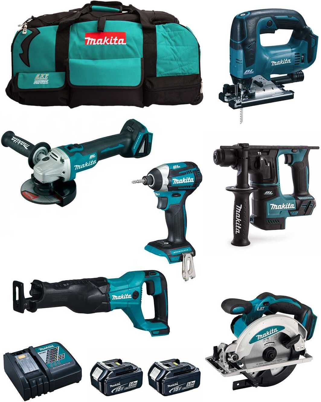 MAKITA Kit MK602 (DHR171 + DGA504 + DTD154 + DJR186 + DJV182 + DSS610 + 2 x 5.0 Ah + DC18RC + 2 x LXT600)