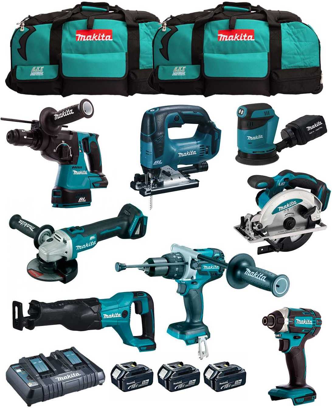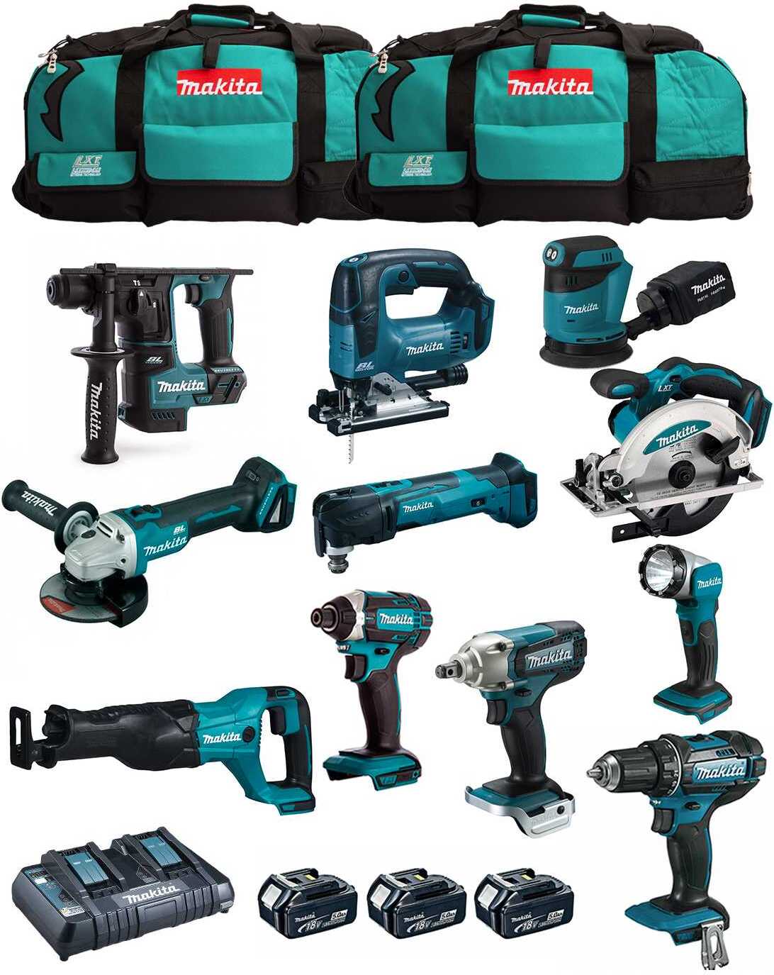 MAKITA Kit MK1002 (DHP481+ DHR243+ DGA504+ DTD152+ DJV182+ DSS610+ DJR186+ DBO180+ DTM51+ DML802+ 3x5,0Ah + DC18RD + 2xLXT600)