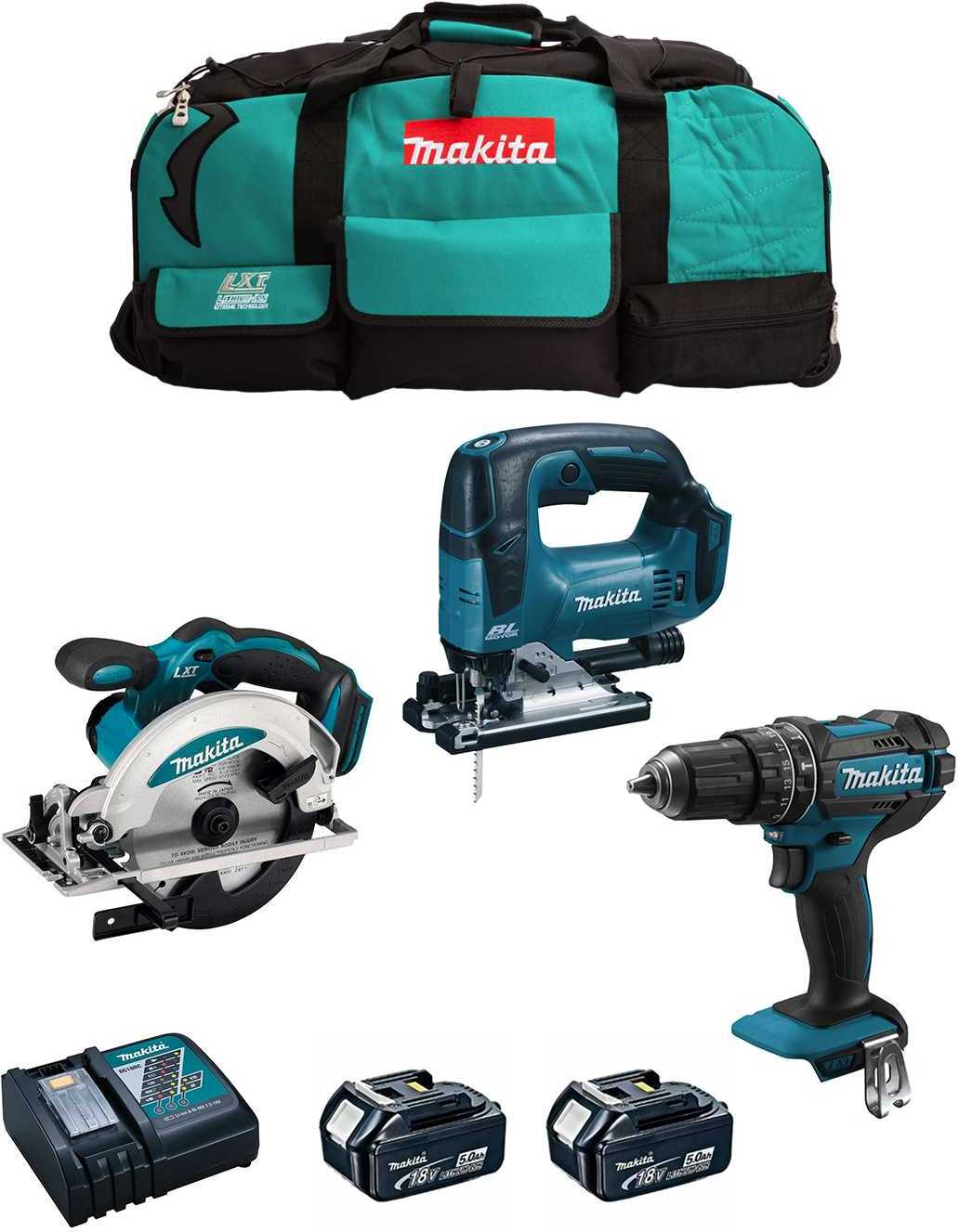 MAKITA Kit MK404 (DHP482 + DSS610 + DJV182 + DBO180 + 2 x 5.0 Ah + DC18RC + LXT600)