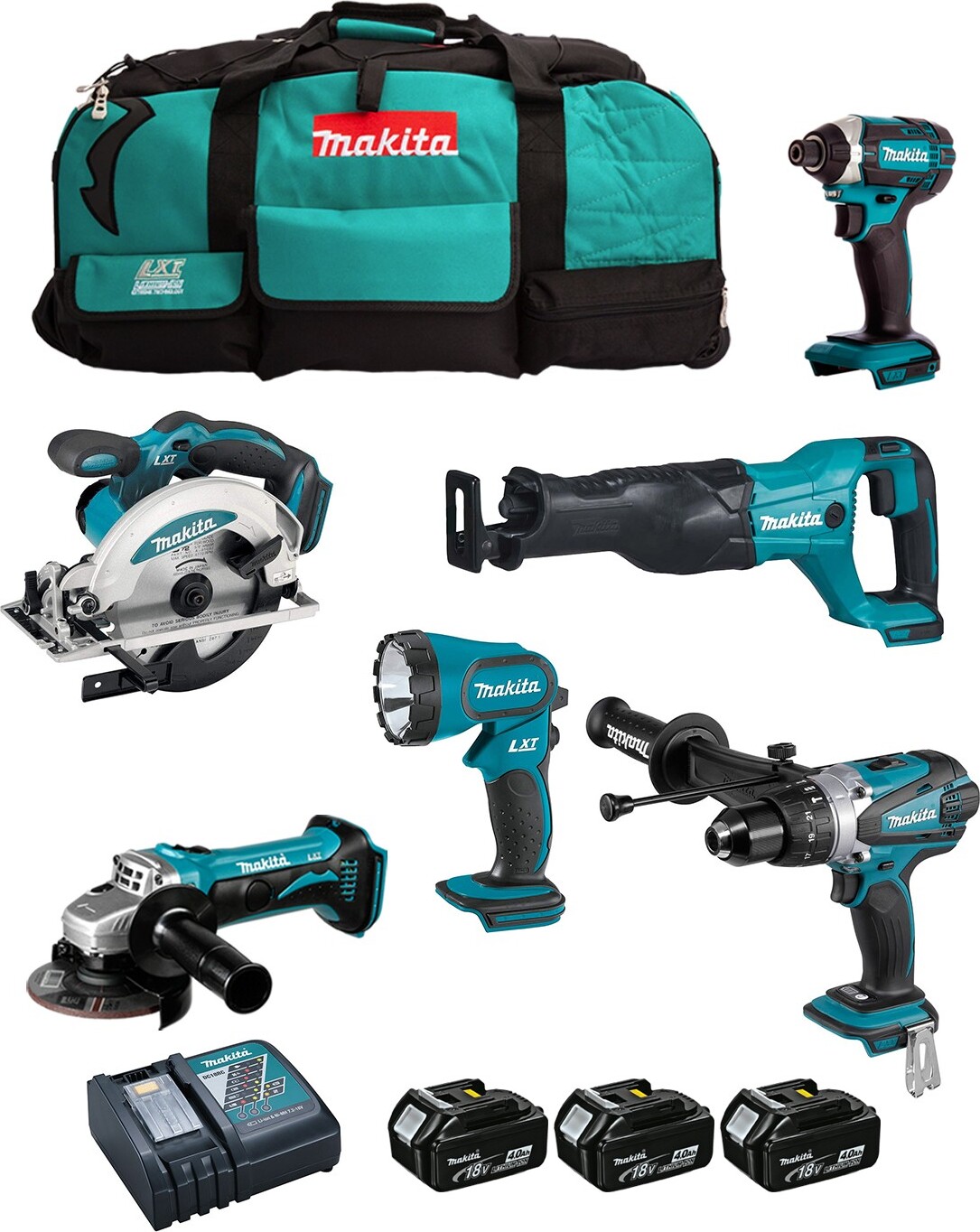 MAKITA Kit DLX6104MX1 (DHP458 + DTD152 + DGA452 + DSS610 + DJR186 + DML185 + 3 x 4.0 Ah + DC18RC + LTX600)