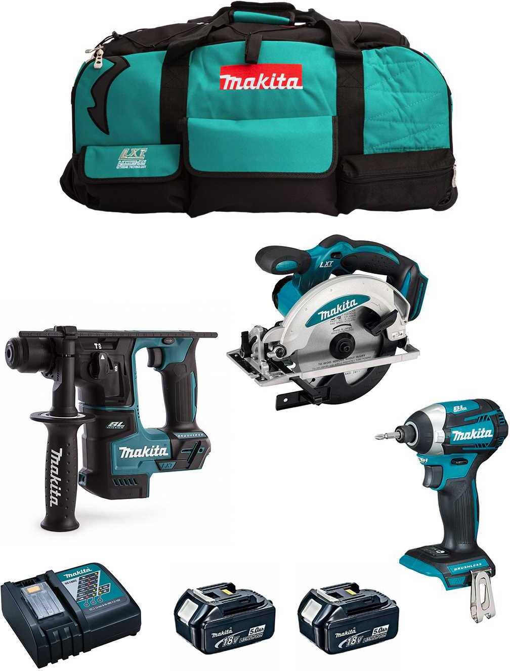 MAKITA Kit MK702 (DDF482 + DHR171 + DGA504 + DTD152 + DJV182 + DSS610 + DBO180 + 2 x 5.0 Ah + DC18RC + 2 x LXT600)
