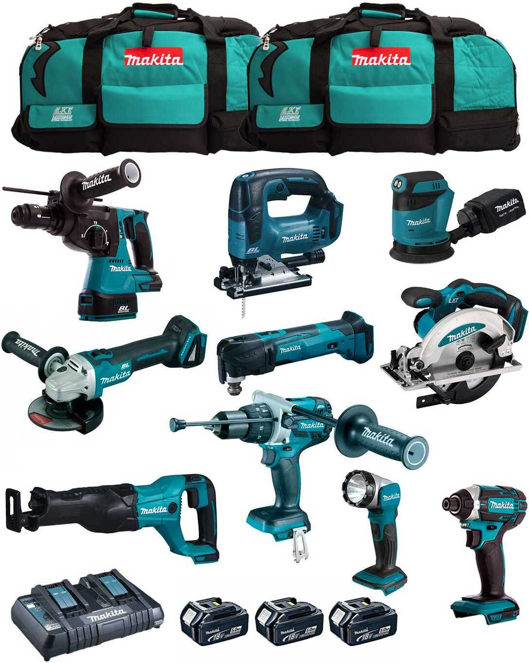 MAKITA Kit MK1003 (DHP482+ DTD152+ DHR171+ DGA452+ DJR183+ DBO180+ DJV180+ DSS610+ DML815+ DKP180+ 3x30Ah + DC18RD+ 2xLXT600)