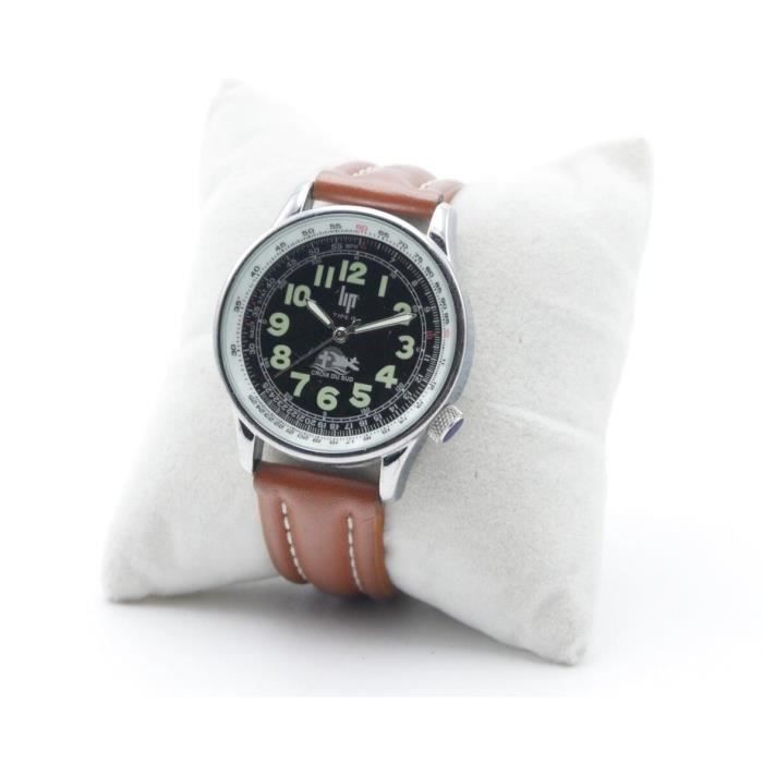 Montre bracelet - LIP - Type 10 croix du sud - Cuir vachette - Marron - Analogique