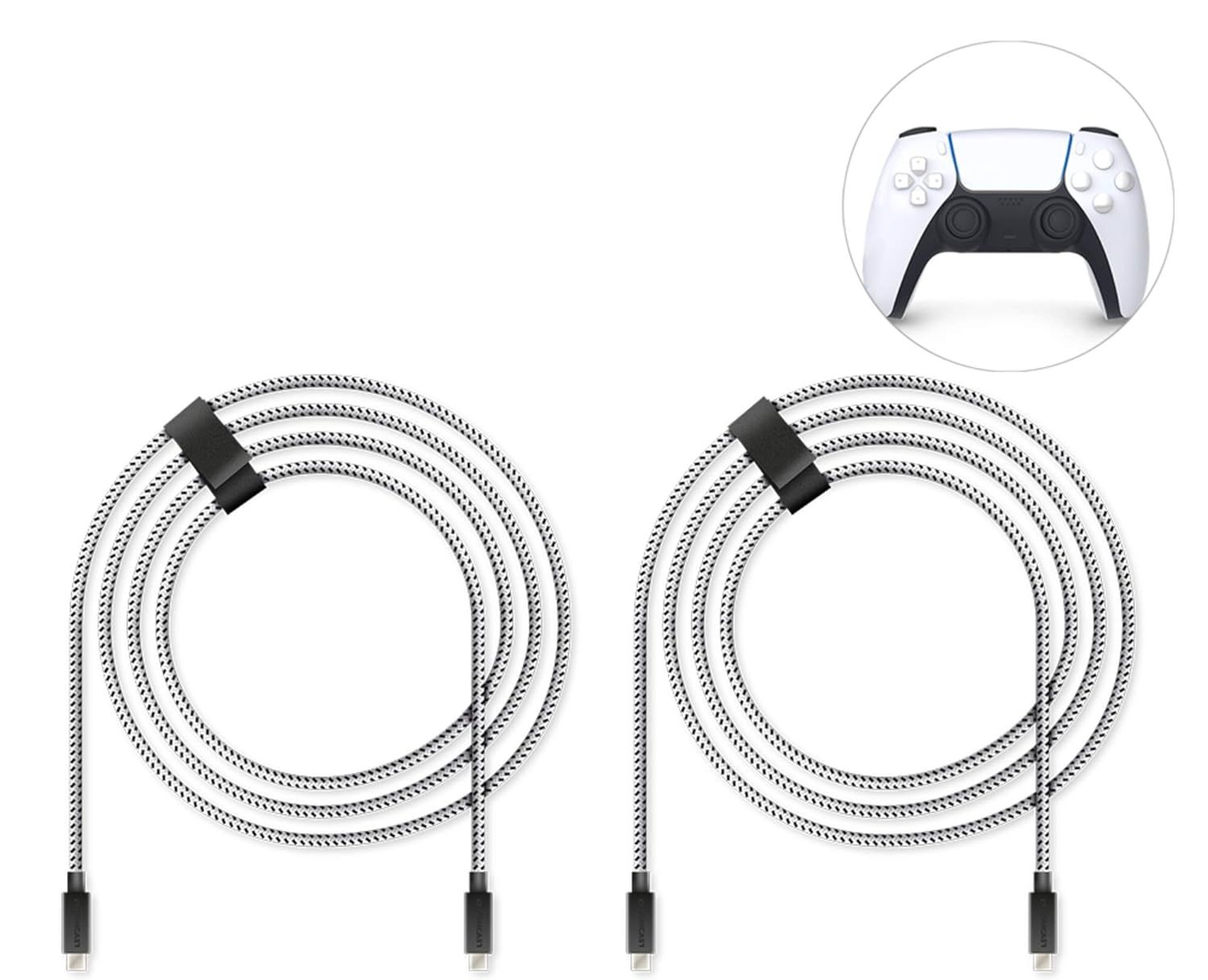 pour PS5 4m 2x câbles de charge rapide pour Sony PlayStation 5 | Câble de la manette Ps5 pour manette Dualsense | Câble de chargeur type c PS 5 avec gaine en nylon (protection anti-torsion)