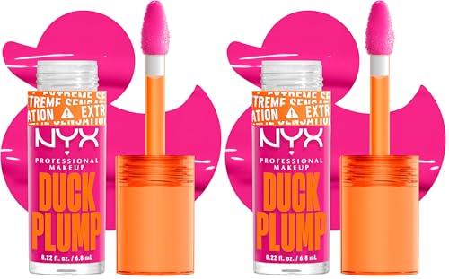 NYX Professional Makeup Laque à Lèvres Repulpante, Couleur Intense, Hautement Pigmentée, Fini Ultra-Brillant, À l'Huile de Gingembre, Vegan, Duck Plump, Teinte : Bubblegum Bae (Lot de 2)
