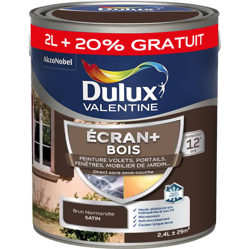 Peinture extérieure Ecran + bois Dulux Valentine satin brun naturel 2L +20% gratuit
