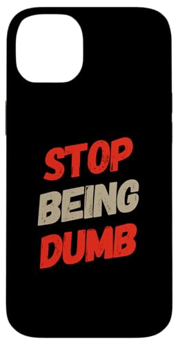 Texte Humoristique Humoristique pour Les Gens Panneau Humoristique Stop Being Dumb Coque pour iPhone 14 Plus