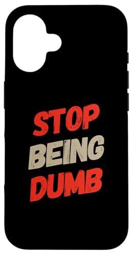 Texte Humoristique Humoristique pour Les Gens Panneau Humoristique Stop Being Dumb Coque pour iPhone 16 Plus