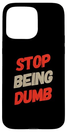 Texte Humoristique Humoristique pour Les Gens Panneau Humoristique Stop Being Dumb Coque pour iPhone 15 Pro Max